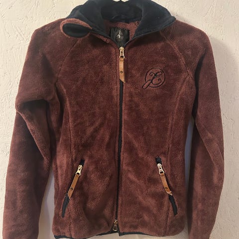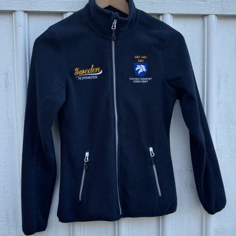 Horze Hyvaa fleecejacka för dam i storlek S. Jackan är svart och vit med mönster och har dragkedja framtill. Materialet är fleece, vilket ger värme och komfort. Jackan har två fickor med dragkedja för förvaring.