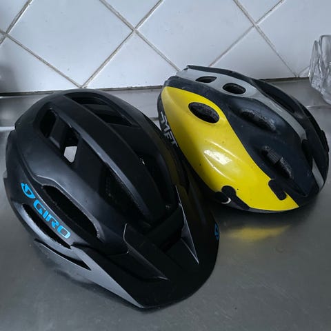 Svart cykelhjälm.