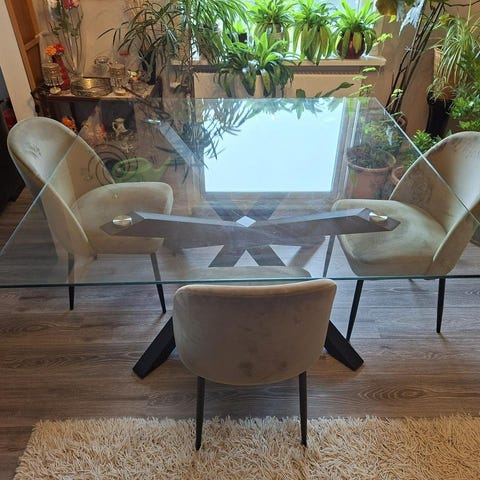 Helt nytt glasbord med stålben. Glaset är avtagbart och bordet är i perfekt skick. Jag flyttar ut den 31 december, så vänligen kontakta mig så snart som möjligt om du vill hämta det.