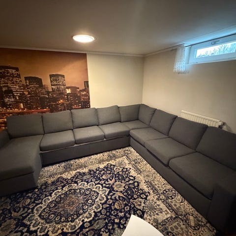U - Soffa med schäslong och divan. Hörnsoffa i sammet.