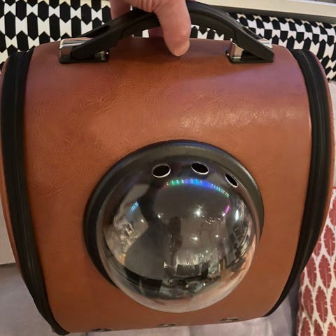 Bär ditt fyrbenta husdjur med svans i en varm och mysig frontpack. Storlek L för katt. Storlek M för hund.