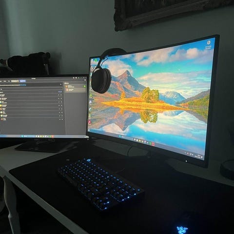 Acer Predator stationär dator inklusive bildskärm, tangentbord, mus, hörlurar och kablar.
