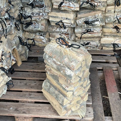 Torr björkved på 40l-säckar.