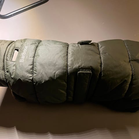 Vinterjacka för en liten hund. Fleece på insidan som håller värmen. Enbart använd en gångav vår vovve som den var för liten för, därmed toppen skick.