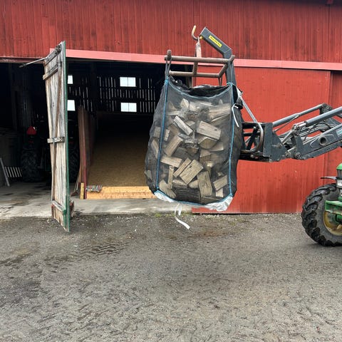 Lövved av al, asp och björk. Veden är ca 30 cm lång och säljs i 1,5 m3 säckar. Vi hjälper till o lastar med traktor.