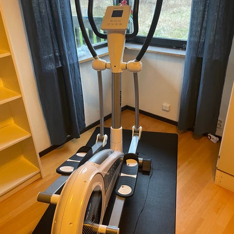 SkipSport Crosstrainer träningsmaskin i svart färg. Maskinen är avsedd för inomhusträning och erbjuder en lågintensiv konditionsträning som är skonsam för lederna.
