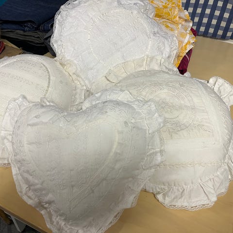 De tre blomsterkuddarna är i nyskick. Pris: 50 kr för alla. Säljes endast tillsammans. Hämtas i Växjö. Skickas ej!