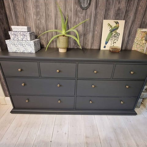 Vit byrå i mycket bra skick, ser ut som ny och massivt trä, handmålad Nypris 6500:-