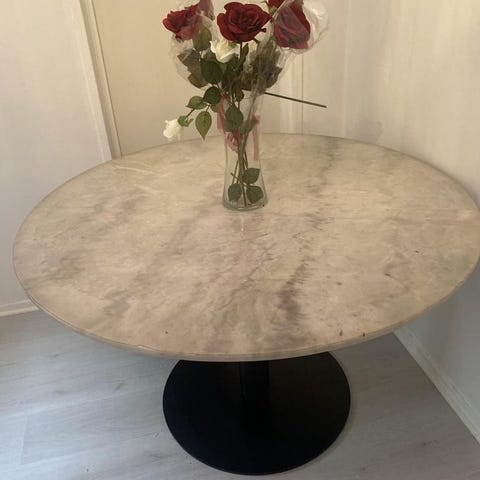 Ett rund matbord i svart marmor med ben i guld från Nimara, i mycket bra skick.