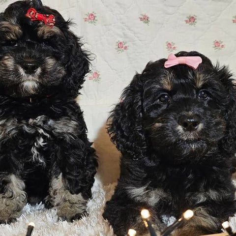 Här finns en ljuvlig kull sociala cockerpoos av mindre modell med lockig och fällfri päls. Det finns två tikar och en hane tillgängliga.