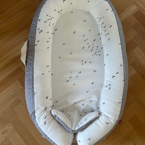 Grå/vit med handtag på sidorna. Kommer med fodral som lätt kan bäras med på resor.