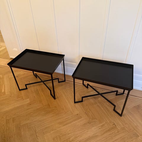 Bordsytan i glas är 26 x 65 cm och bordets höjd är 53 cm.