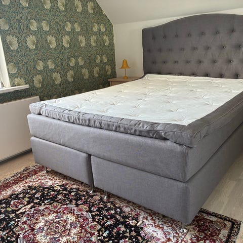 Jättefin Ca 3 år gammal 160 säng(grå, 2 st 80 sängar)Roma från Mio, ny bäddmadrass ca 1 år gammal, höga silver ben , finns beige fin sängkappa att köpa till om så önskas(1 år gammal)blir tillgänglig i mitten av januari, får gärna komma och titta så vi bäddar upp den. (Katt finns i hushållet)