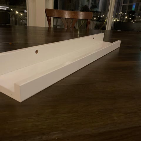 Tavelhyllan har ett speciellt spår där du kan placera dina små tavelramar i en perfekt vinkel.