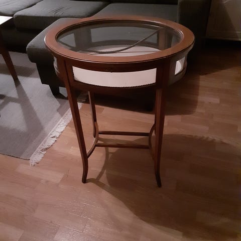 En gjutjärnskruka som man kan ha ute och plantera i. Kan även användas som soffbord.