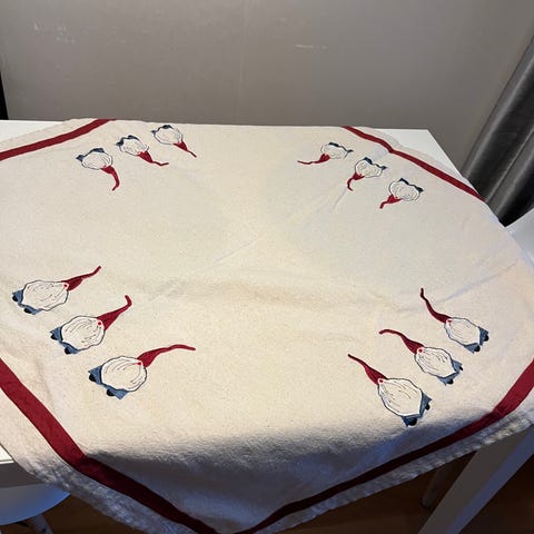 Kvadratiska jul bordsdukar med måtten 81,5x89 cm på båda.
