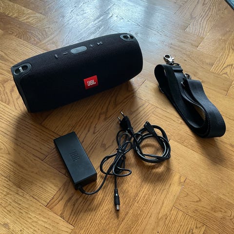 JBL Xtreme 2 bärbar högtalare i mörkgrå färg. Utrustad med trådlös Bluetooth-anslutning, robust tygöverdrag och bärrem. Har flera anslutningsportar inklusive USB och aux. Designad för att leverera kraftfullt ljud i portabelt format.