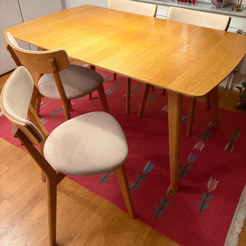 Stolarna i ok skick, men dynorna behöver givetvis fräschas upp eller bytas ut av köparen.