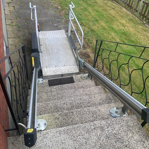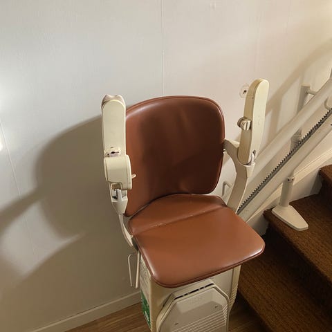 En fullt fungerande trapphiss till en svängdtrappa inomhusbruk, servad/besiktigad som den ska, nästa besiktning är oktober 2026.