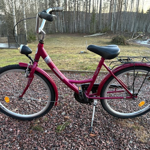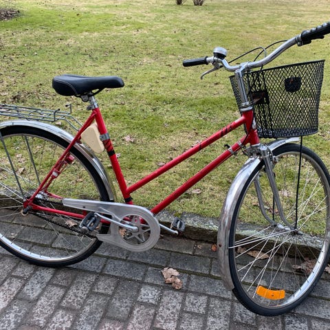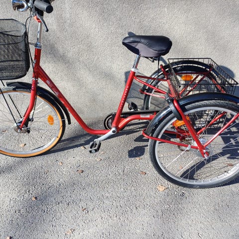Monark Cykeln, är utrustad med tre hjul för extra stabilitet, en korg framtill för förvaring och ett pakethållare bak. Jag köpte den till min mamma men hon använde den knappt kanske en eller två gånger om året, det enda den behöver är att rengöra rosten, vilket jag förhoppningsvis ska göra snart.