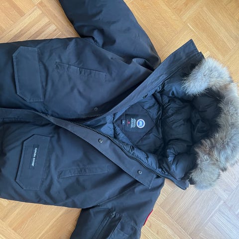 Canada Goose jacka i storlek S, svart färg och tillverkad i dun. Jackan är designad för utomhusbruk och erbjuder isolering och värme. Materialet består huvudsakligen av dun för att ge god isolering vid kallt väder.
