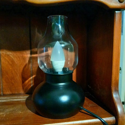 Ett par vackra fotogenlampor med blå glasfot och klarglas kupa. Lamporna ger ett behagligt sken och passar perfekt som stämningsbelysning. Observera inga skador. Som finns på bilden.