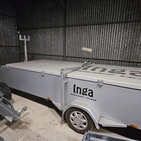 Båt trailer. Float on med rullar i botten.