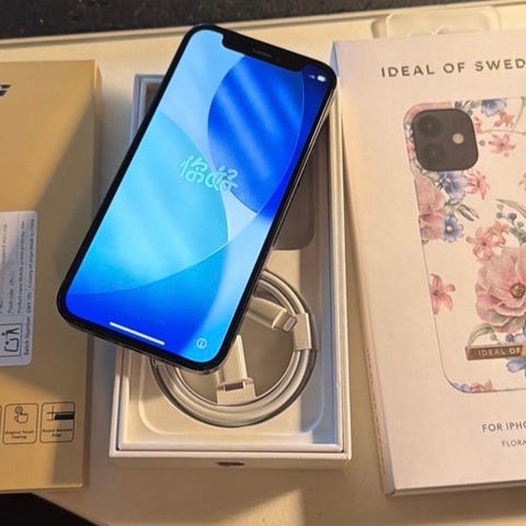 Apple iPhone 12 mini med 128 GB lagringskapacitet i färgen vit.