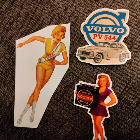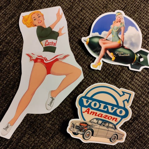 Dekaler, Retro 50, 60 & 70 tal. Volvo duett, pinup, Oldsmobile, Zundapp & Bp