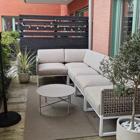 Utesoffa med grå dyna.