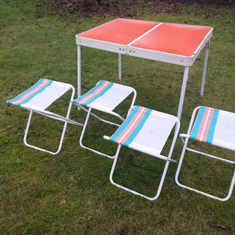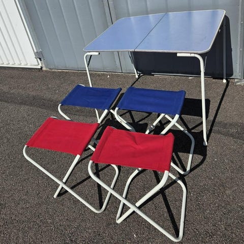 Retro campingbord med 4 stolar och ett primus gasol kök