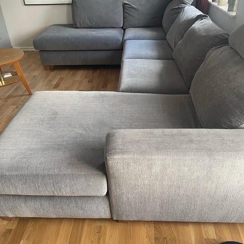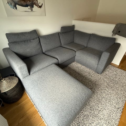 Mio hörnsoffa i grått tyg. Soffan är utformad som en större hörnmodell med flera sittplatser och en divan-/schäslongdel. Klädseln är i textil natur silver (grå) och soffan har lösa kuddar. Passar för vardagsrum där man önskar en rymlig sittgrupp med hörnsoffslösning. Bra pris vid snabb affär. Finns i Norrköping