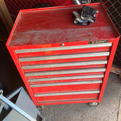 Modulbackskarusell utan lådor och verktygs tavla med hjul i ok skick.