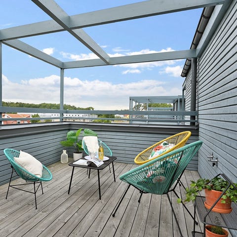 2st stolar med grå rottingstol och metallram. Passar för inomhus- och utomhusbruk, med en enkel och modern design. Bred 89 cm.