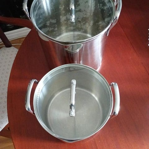 Ett set med kastruller i olika storlekar, i mycket gott och rent skick, sparsamt använda.