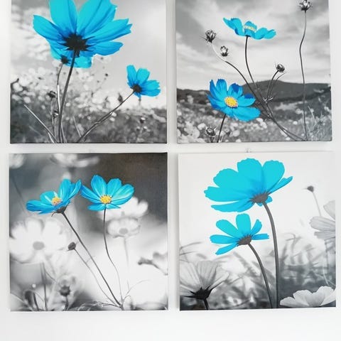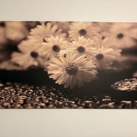 Säljer en elegant och dekorativ tavla med vita blommor i modern, stilren design.