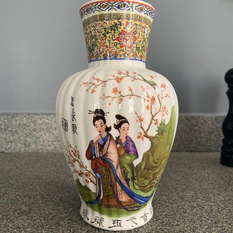 Antik Vas Kina 1800- Talet. Lekande Barn Och Lärare .Höjd ca 14cm