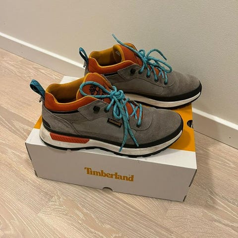 Ett par Timberland-kängor i storlek 42, färg svart. Som framgår av bilderna är kängorna i kanonbra skick och endast använda ett fåtal gånger.