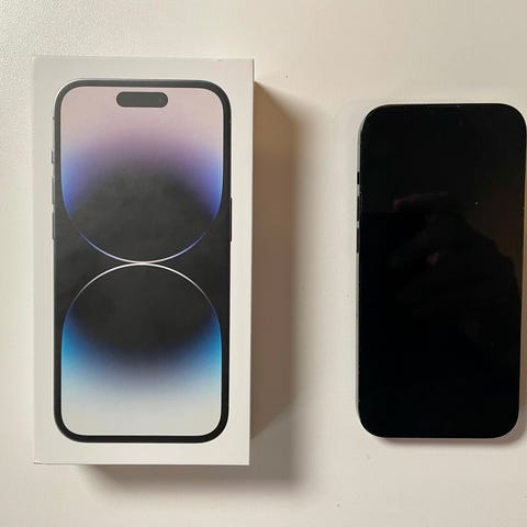 Apple iPhone 14 Pro mobiltelefon med 128 GB lagringskapacitet. Enheten har en svart färg och är utrustad med avancerade kamerafunktioner. Passar för användare som söker en smartphone med hög prestanda och stor lagringsutrymme. 86% battery.