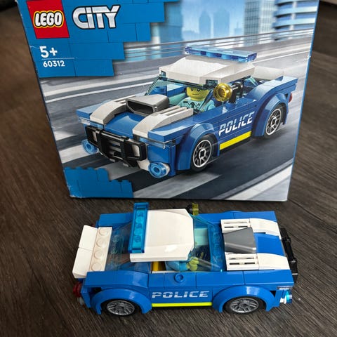 LEGO City Polisbil byggsats med detaljerad design inklusive en polisbil och tillhörande instruktioner.