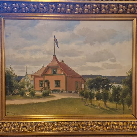 Vacker oljemålning på duk. Svårt att tyda signatur på vänster sida, står en del på baksidan med blyerts men samma där. Bilder kan skickas vid begäran.