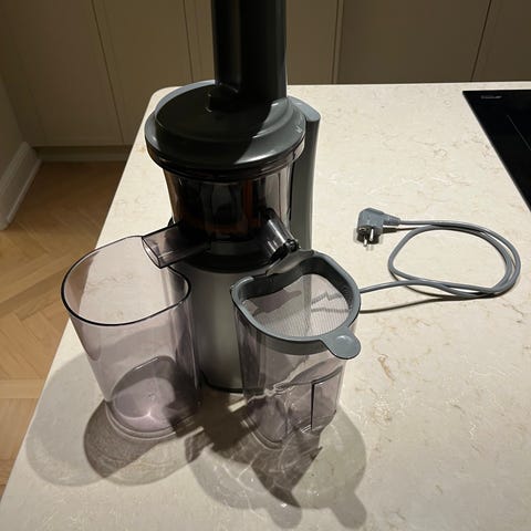 Maskinen är i gott skick, väl omhändertagen och rengjord. Den är redo att börja pressa din favoritjuice idag!