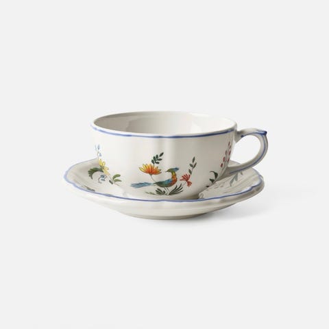 Tekopp med fat från LFZ (Lomonosov porslinsfabrik, tidigare den kejserliga porslinsfabriken i Spb), serien Den rosa blomman (Rozovyj cvetok).