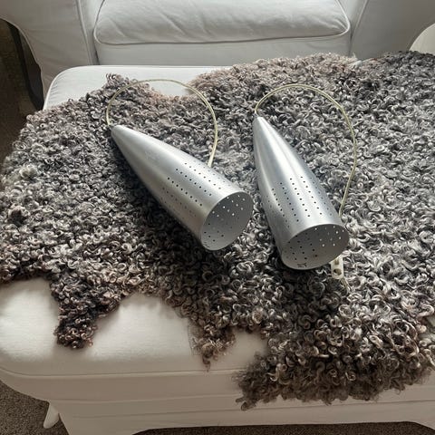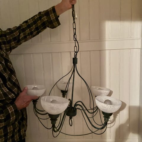 En vit sladd för tak (ej med på bild), E14, behöver kompletteras med kontakt. 20:-