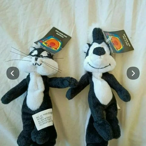 Looney Tunes figurer , har lekts med så är endast lapp på en och finns litet märke bak på kanin och fågel mer skavt där som kan ses på bild.