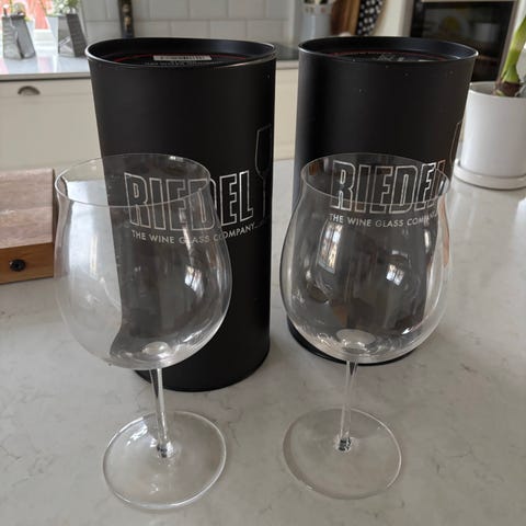 Riedel vinprovarglas och karaff set bestående av flera glas och en karaff. Glasen är designade för vinprovning och tillverkade av klart glas. Setet levereras i originalförpackning.