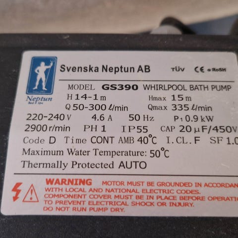Pulsafeeder 2440RT doserpump med modellnummer 2440RT och serialnummer 39982. Utrustad med en 17,6 mm slang och en maximal tryckkapacitet på 75 psi (5,2 bar). Pumpen har en flödeskapacitet på 0,06 - 0,6 liter per minut och är avsedd för användning med vätskor. Produkten levereras med installations- och underhållsmanual samt tillbehör. Finnes 2st tillsammans 3000kr = 2x1500kr