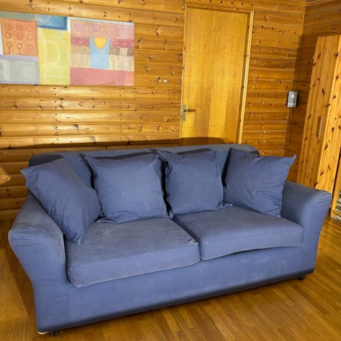 Skicket är bra, sparsamt använd. Finns en liten svag fläck på divanen som jag ej testat ta bort då de inte är något jag tycker stör.