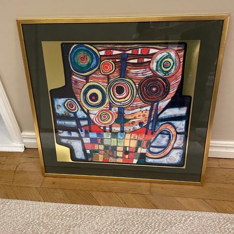 Tryck ”Como Robar Un Millon” som jag köpte från ett litet galleri i London för 10-15 år sedan. Grafisk stil.