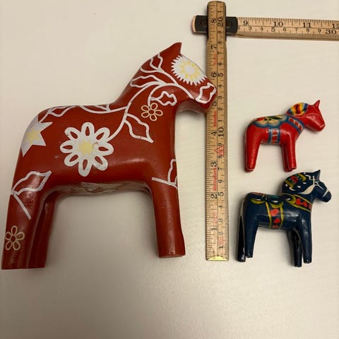 Traditionella Dalahästar i trä, 3-pack, färgglada